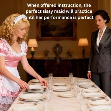 By following these rules with consistency, dignity and pride, a sissy maid upholds the highest traditions of domestic service and ensures the household remains orderly, harmonious and well cared for.